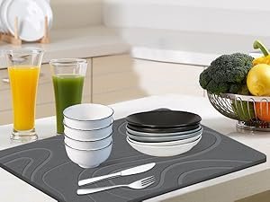 Bid farewell to wet countertops with our stone mat for drying utensils. Achieve a clean and organized kitchen effortlessly.