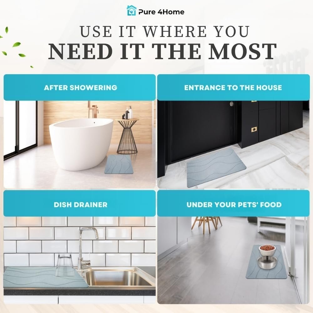 Versatile Use: This quick-drying bathroom floor mat can be used in various settings such as bathrooms, pools, and even pet bowl areas, offering a wide range of applications.