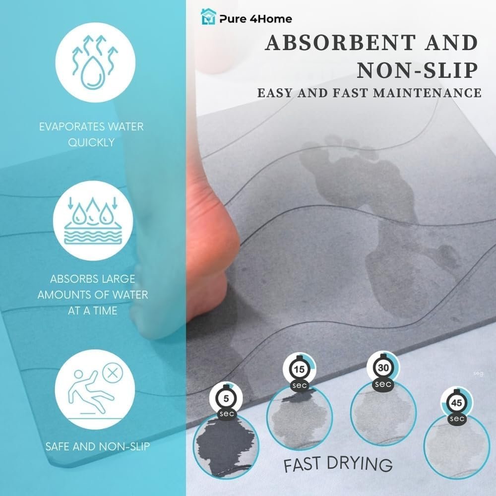 Exceptional Absorbency: The bath stone mats have excellent water absorption and drying properties, absorbing moisture quickly. When your feet leave the bath stone mat, wet footprints will disappear in seconds.