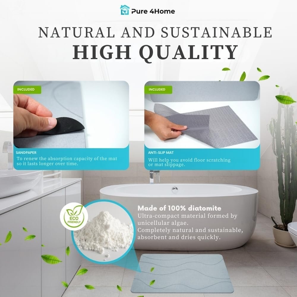 Enhanced Safety: Slips can be avoided by placing a non-slip mat underneath the diatomaceous earth stone bath mat, as it provides excellent grip and stability on the floor.