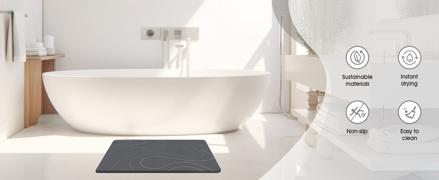 Healthy: Made from natural and innovative diatomaceous earth, the stone slab bath mat ensures a safe and healthy option for your home.