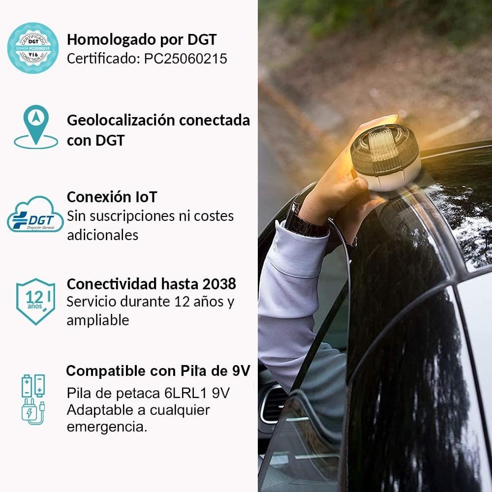 Cumple con la normativa de la DGT para vehículos en España. Sustituye a los triángulos de emergencia tradicionales, permitiéndote señalizar peligros sin bajarte del coche, evitando situaciones de riesgo en autovías.