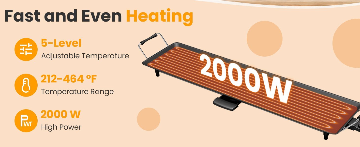 Potencia de 2000W, calienta muy r¨¢pido y de forma uniforme.