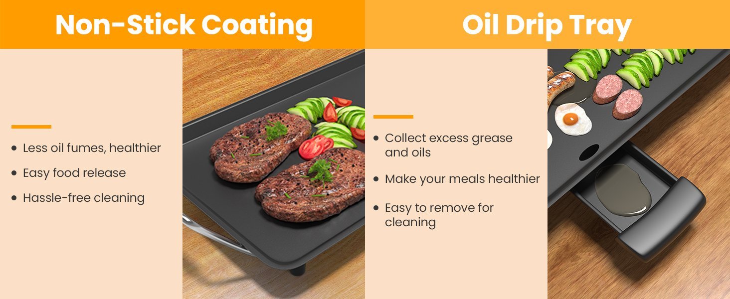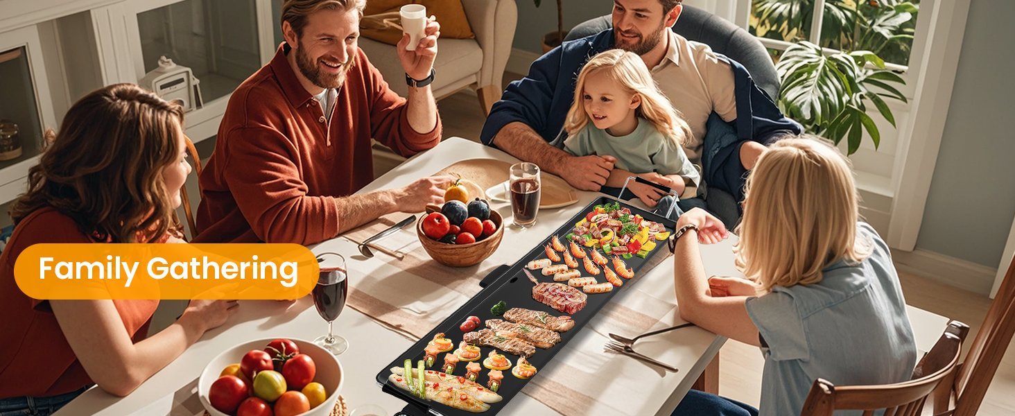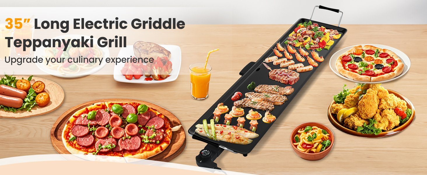 La superficie de 35 x 9 pulgadas te permite cocinar una variedad de comidas