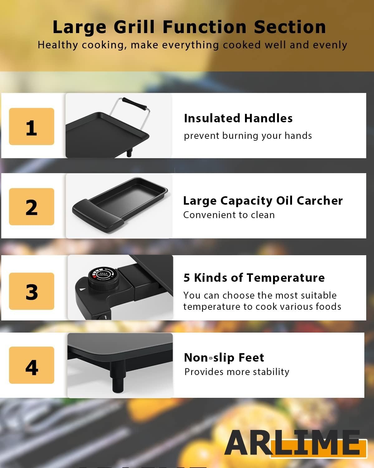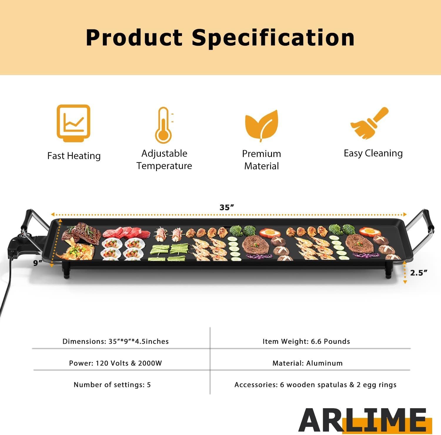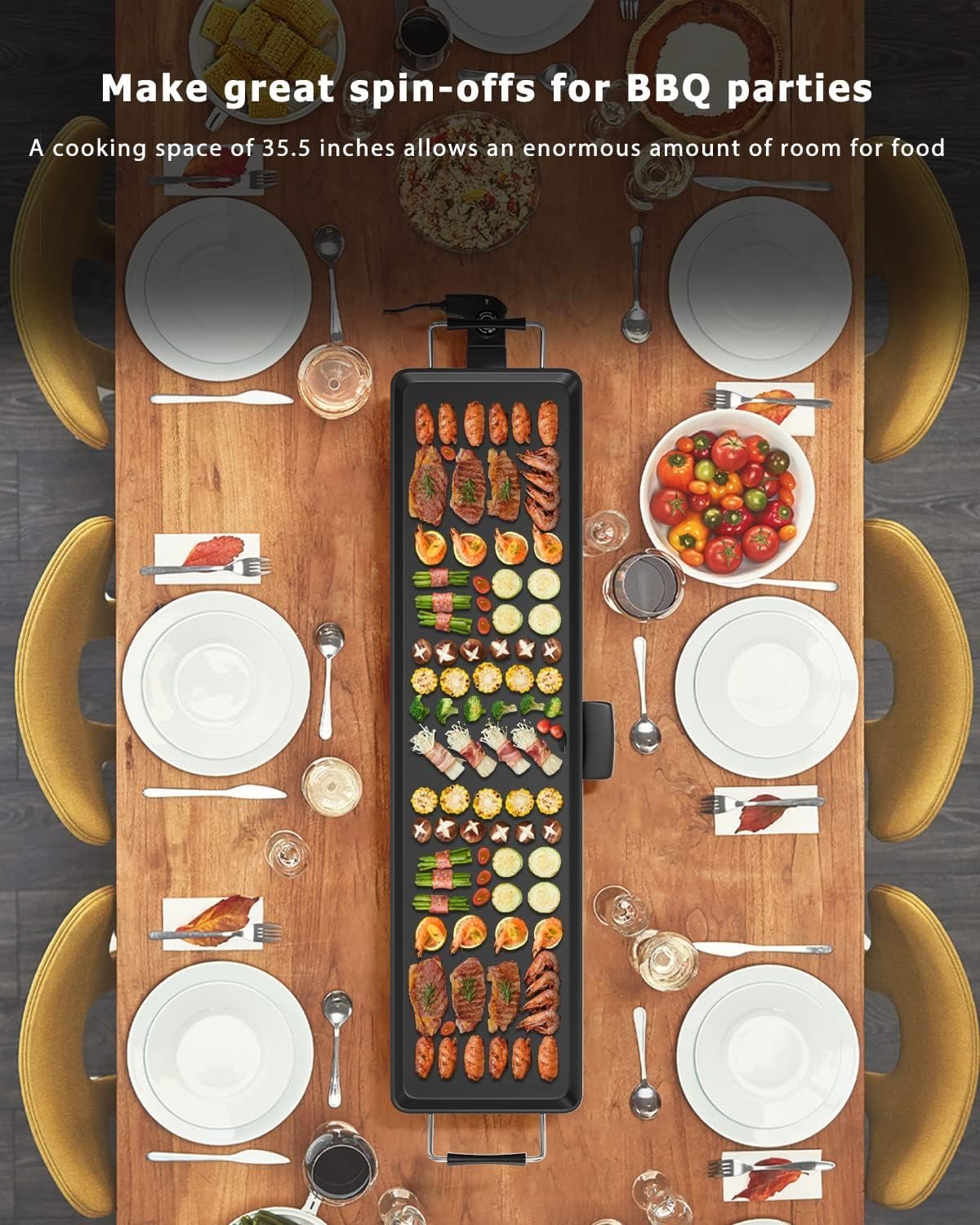 La superficie de 35 x 9 pulgadas te permite cocinar una variedad de comidas