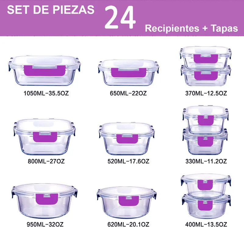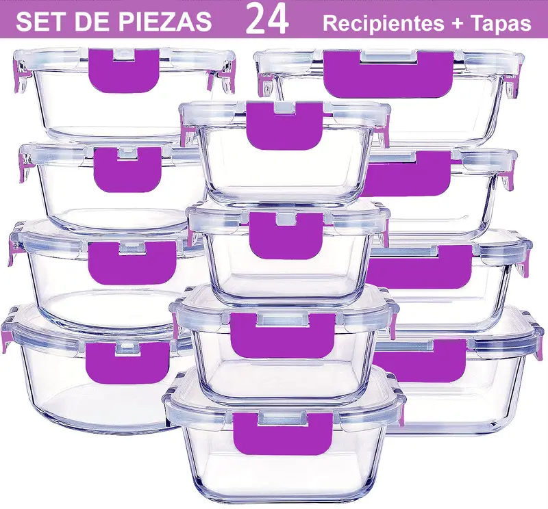 Nuestros recipientes de almacenamiento de vidrio están hechos de vidrio de borosilicato de alta calidad, que son aptos para microondas, puedes utilizarlos para almacenamiento en congelador, microondas (no las tapas) y lavavajillas.